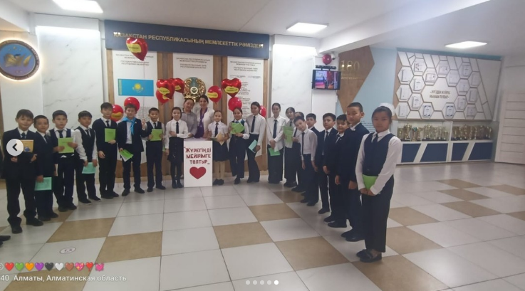 2023 жылдың 21 ақпан күні мектебіміздің әлеуметтік педагогтары Сандуғаш Айматаева мен Жансая Әсілхан және директордың тәрбие ісі жөніндегі орынбасары Тоқтыбаева Алқаның ұйымдастыруымен «Жүрегіңді мейірімге толтыр» атты қайырымдылық акциясы өз жалғасын тауып жатыр. Бастауыш сыныптар, жоғары сынып оқушылары мен мектебіміздің кіші қызметкерлері акция барысында өз үлестерін қосып жатыр. Ұстаздарды, ата-аналарды, оқушыларды қайырымдылық акцияға ат салысуымызға шақырамыз.