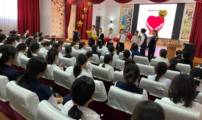 2023 жылдың 17 ақпан күні № 180 жалпы білім беретін мектепте "Қыз инабаттылығымен әдемі,әдептілігімен сәнді” тақырыбында 9,10,11 сынып оқушылары арасында қыздар жиналысы өтті.