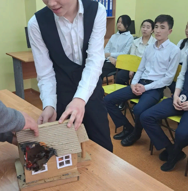 2023 жылдың 28 ақпан күні мектебіміздің алғашқы әскери дайындық пәнінің мұғалімі Нуркен Батырхан 9 сынып оқушыларына өрт кезіндегі қауыпсіздік шаралары тақырыбында түсіндірме жұмыстары жүргізілді. Түсіндірме жұмыстары кезінде бейнематериалдар көрсетіліп, өрт болған кездегі іс-әрекеттер түсіндірілді.