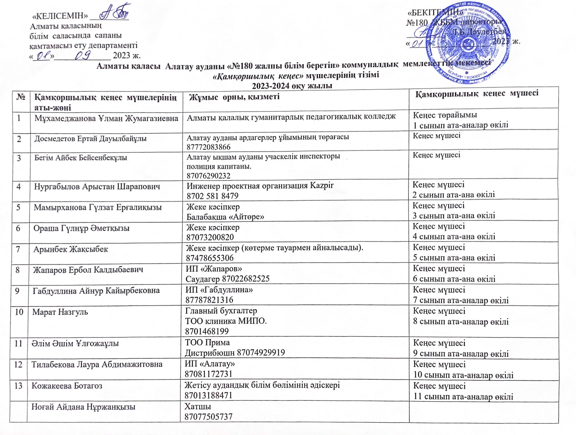 «Қамқоршылық кеңес» мүшелері » 180 мектеп