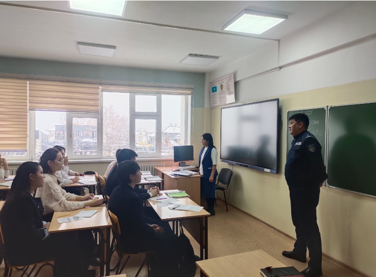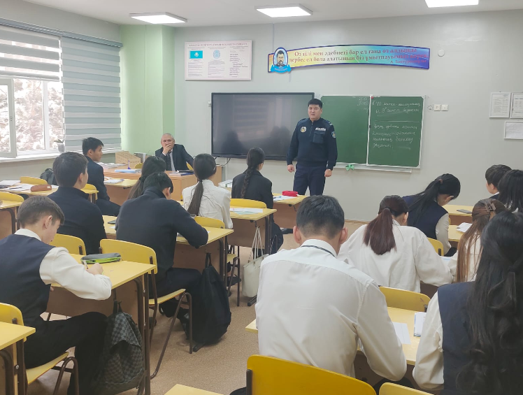 Мектеп инспекторы: О.А.Балабаев 1–11-сынып оқушыларымен «Жеке тұлғаға қарсы қылмыстар» тақырыбында профилактикалық түсіндірме жұмыстары жүргізілді.