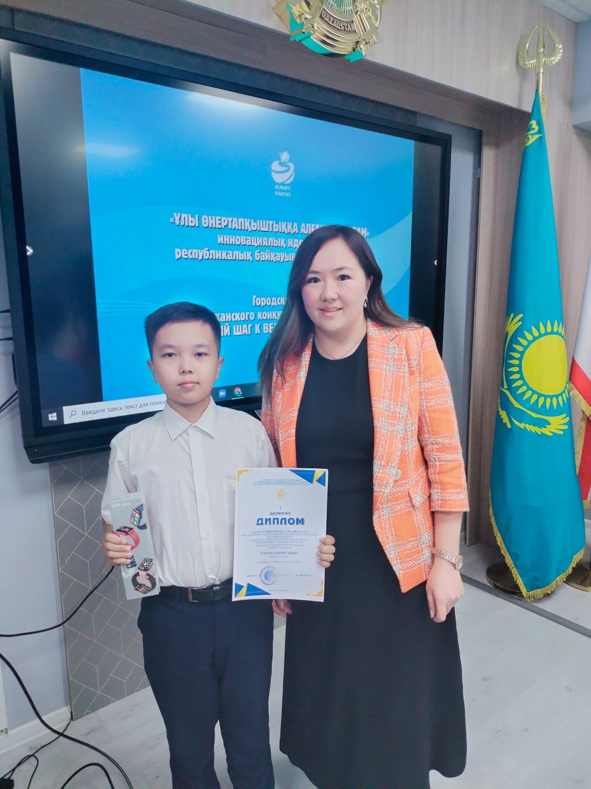 2022 жылдың 04 қазан күні Алматы дарыны орталығының ұйымдастыруымен өткен “Ұлы өнертапқыштыққа алғашқы қадам” инновациялық идеялардың республикалық байқауының қалалық кезеңінде өндірістік саласындағы техникалық құрастыру номинациясы бойынша 7 сынып оқушысы Елеуқазы Ерсайын IДӘРЕЖЕЛІ дипломмен марапатталып, Республикалық кезеңге жолдама алды. Жетекшісі: Үйсінбаев Айдос Оразханович. Ерсайынға келесі кезеңге сәттілік тілейміз!
