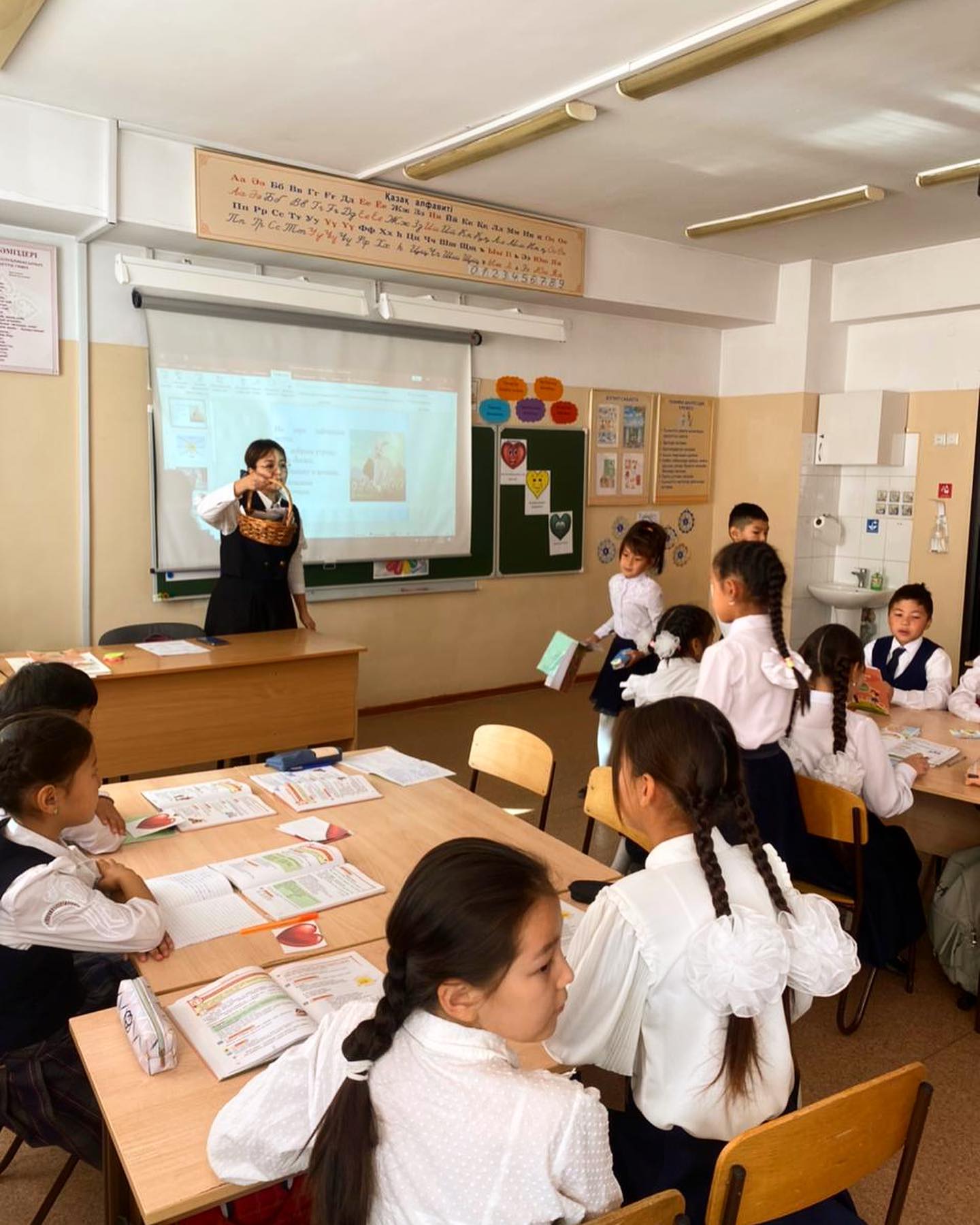 180 жалпы білім беретін мектепте орыс тілі мен әдебиеті бірлестігінің онкүндігі аясында 12 қазан күні орыс тілі мен әдебиеті пәні мұғалімі Нургалыкова Аяна Бахытовна “Мир в моем сердце” тақырыбында 4”Ә” сыныбында ашық сабақ өткізді. Аяна Бахытовна оқушылардың сабаққа деген қызығушылығын арттыру мақсатында түрлі “Кластер Ульи”, Чтение по кругу” “Learning Apps”, рефлексия “Вежливый зайчик” атты түрлі әдіс-тәсілдерін қолданды. Оқушылар жеке, жұптық, топтық жұмыстар жасап, өз ойларын еркін ортаға салды. Видео “ Твори добро”, бейнематериалдар пайдалана отырып, мұғалім өз сабағының мақсатына жете білді.