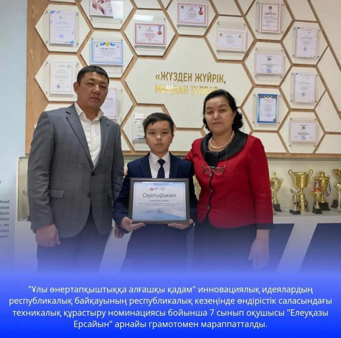 28 қараша 2022 0 1 2 3 4 5 "Ұлы өнертапқыштыққа алғашқы қадам" "Ұлы өнертапқыштыққа алғашқы қадам" инновациялық идеялардың республикалық байқауының республикалық кезеңінде өндірістік саласындағы техникалық құрастыру номинациясы бойынша 7 сынып оқушысы "Елеуқазы Ерсайын" арнайы грамотомен мараппатталды. Осы беттің QR-коды:QR-код этой страницы: