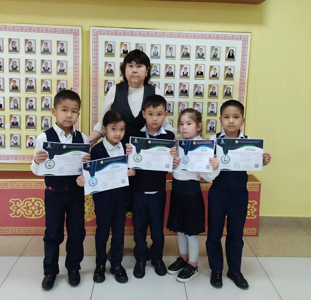 Қазақстан Республикасының Оқу-ағарту министрлігінің бастамасымен "Мұқағали әлемі" білім парталы ұйымдастырған "Мақатаев оқулары" конкурсына 1"Б" сынып оқушылары қатысып, жүлделі орынға ие болды. Нұрғали Раяна, Нұрлан Раяна жүлделі І-орынды, Көктал Нұрмаханбет, Кемелбай Санжар, Оразкулов Алинұр жүлделі ІІ-орынды иеленді.