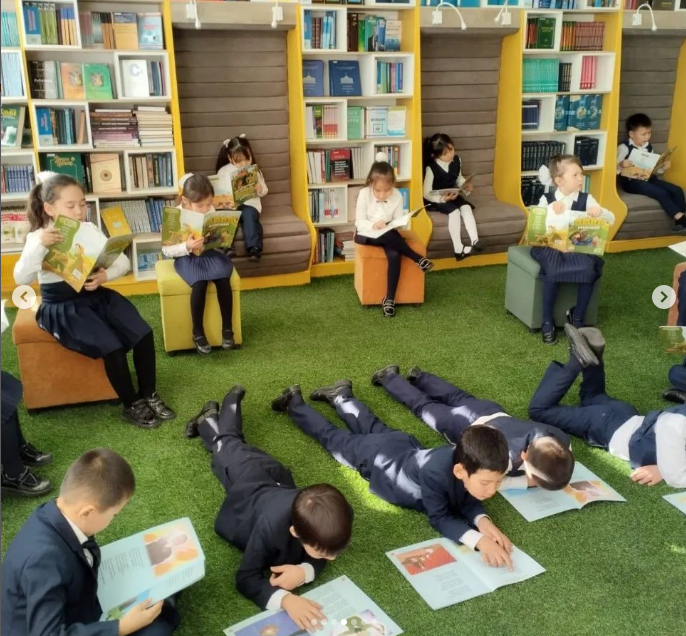 1-сынып оқушылары сынып жетекшілерімен бірге кітапханаға саяхат жасады. Олар кітапхананы көріп, кітаптармен танысты. Білім алушыларға кітапхана туралы, қалай кітап алуға болатыны, кітапхана ережелері мен қағидалары түсіндірілді.