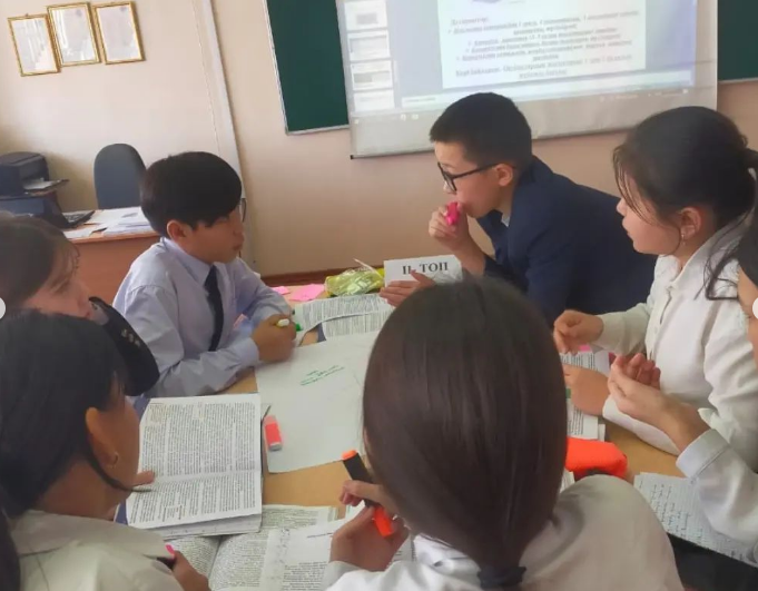 Сабақ барысында өткен материалды еске тусіру үшін "Колесо удачи " әдісін және де фишбоун, класстер әдістерін қолдану арқылы оқушылардың сабаққа деген белсенділіктерін арттырып, Padlett платформасы арқылы кері байланыс орнатты.