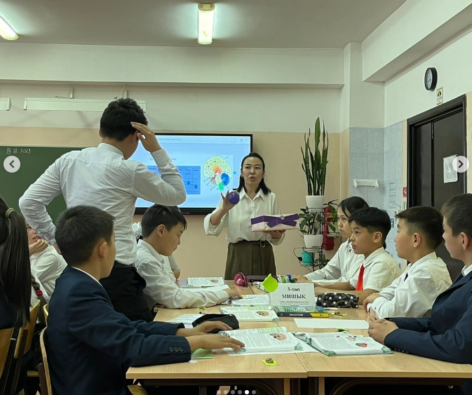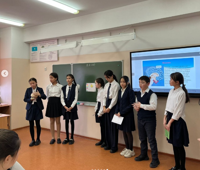 2023 жылдың 15 ақпан күні мектебіміздің биология пәні мұғалімі Өміртай Кармела 7 "Г" сынып оқушыларына "Ми.Ми бөлімдерінің құрылысы мен қызметтері: сопақша ми, артқы ми( ми көпірі, мишық),орталық және аралық ми.Үлкен ми сыңарлары" тақырыбында ашық сабақ өтті. Сабақтың мақсаты: Орталық жүйке жүйесі бөлімдерінің құрылысы мен қызметтерін біліп салыстыру. Сабақ барысында «Wordwall» әдісі, .«Талдау» әдісі, «Иә, жоқ сұрақ-жауап» әдісі, «Смайликтер» әдісі қолданылды. Оқушылар сабаққа белсенді қатысып, мұғалім оқу мақсатына жетті.