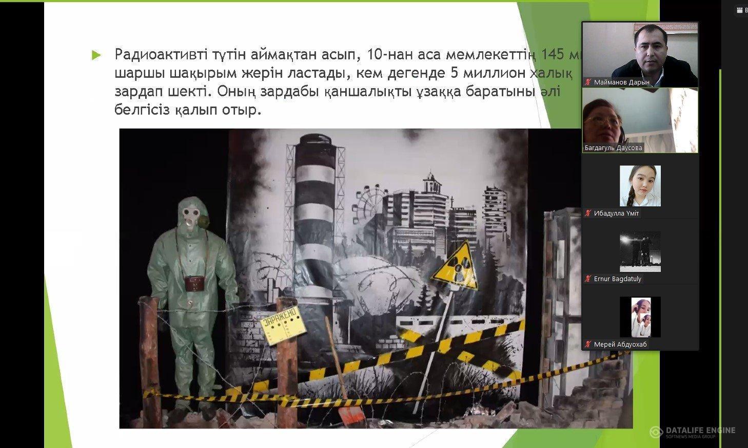 Алматы қаласы Алатау ауданы #180жалпы білім беретін мектепте 26 сәуір күні 10 "А" сынып жетекшісі Даусова Бағдагул Алдамбаевнаның ұйымдастыруымен Чернобыль апаты-халық қасіреті тақыбында " сыныптан тыс іс-шара өткізілді. Мақсаты : Оқушыларға Чернобыль апатының кешегісі мен бүгінін сонымен қатар ертеңі, яғни болашағы туралы жан-жақты ақпарат беру. Апатты жоюға аттанған батырларымыздың ерлігін өскелең ұрпаққа насихаттау.