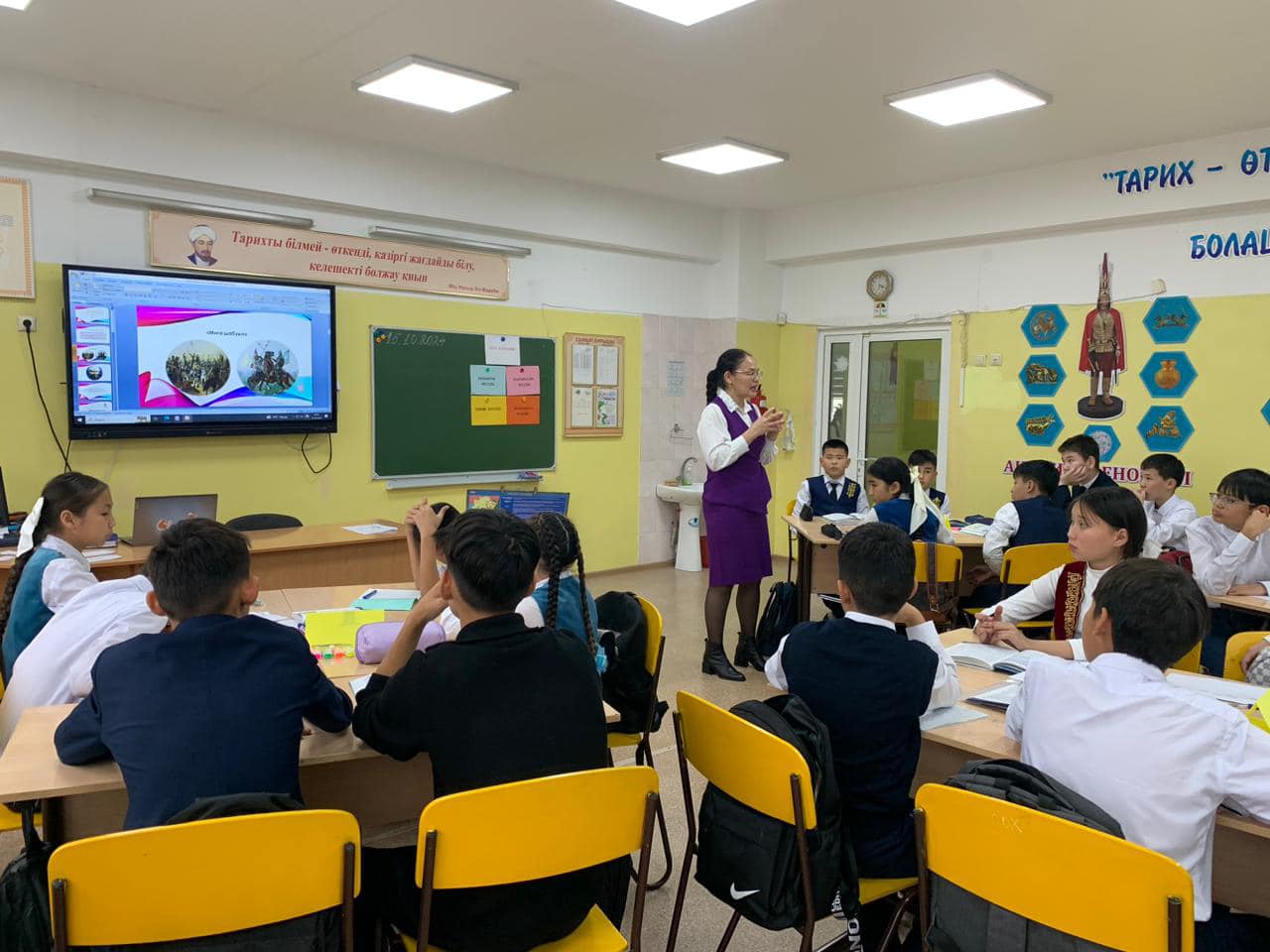 № 180 мектеп - гимназиясында "Алаш мұраты білім мен ғылымның бастауы" онкүндігі аясында тарих пәнінің мұғалімі Абикенова Бану "Абылай ханның ішкі және сыртқы саясаты" тақырыбында 7 "Д" сынып қазақстан тарихы пәнінен ашық сабақ өтті.