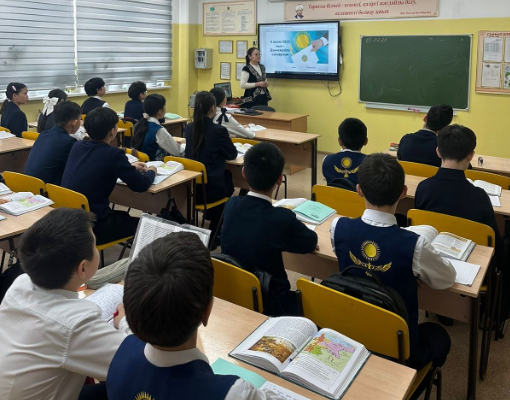 № 180 мектеп гимназиясында “Сайлау және сайлану әр азаматтың Конституциялық құқығы” тақырыбында 5-11 сыныптар арасында тәрбие сағаттары өткізілді.