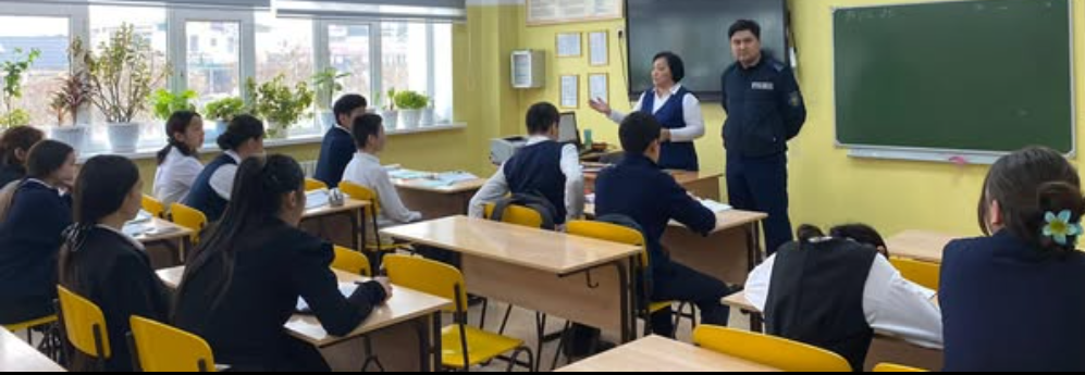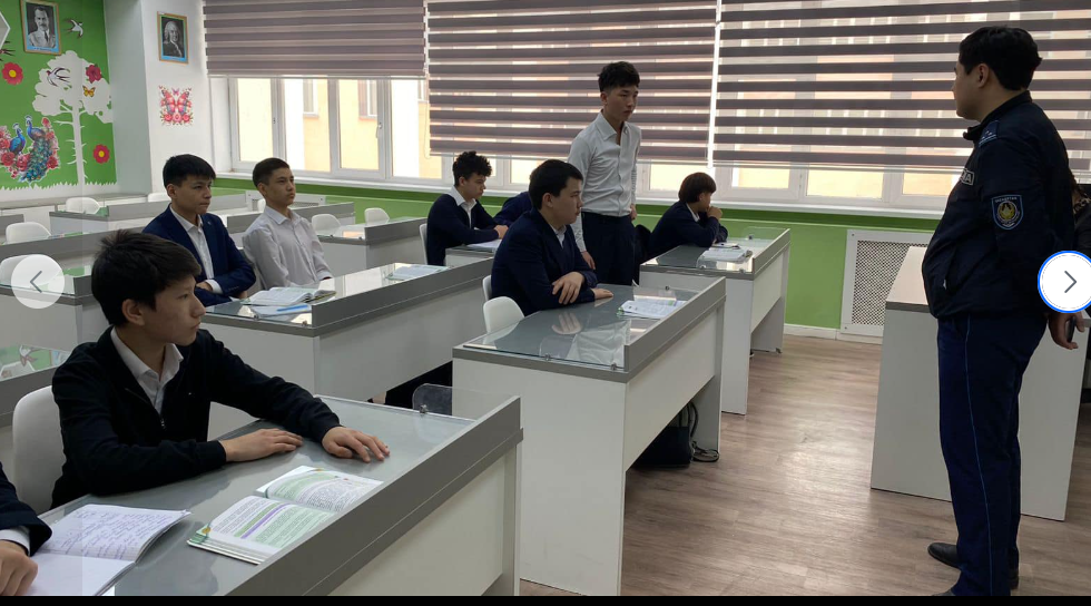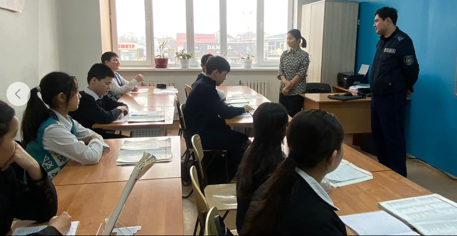 Бүгін 8-9 сынып оқушыларымен Алатау ауданы ювеналды полиция бөлімінің инспекторы, аға лейтенант Әбен Ғалымжан Ержанұлы оқушыларға профилактикалық түсі