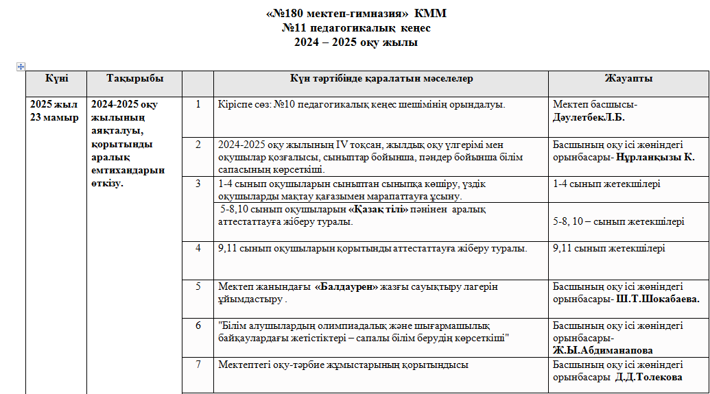 Кеңес барысында оқу жылының қорытындысы жасалып, жазғы кезеңге жоспарлар айқындалды.