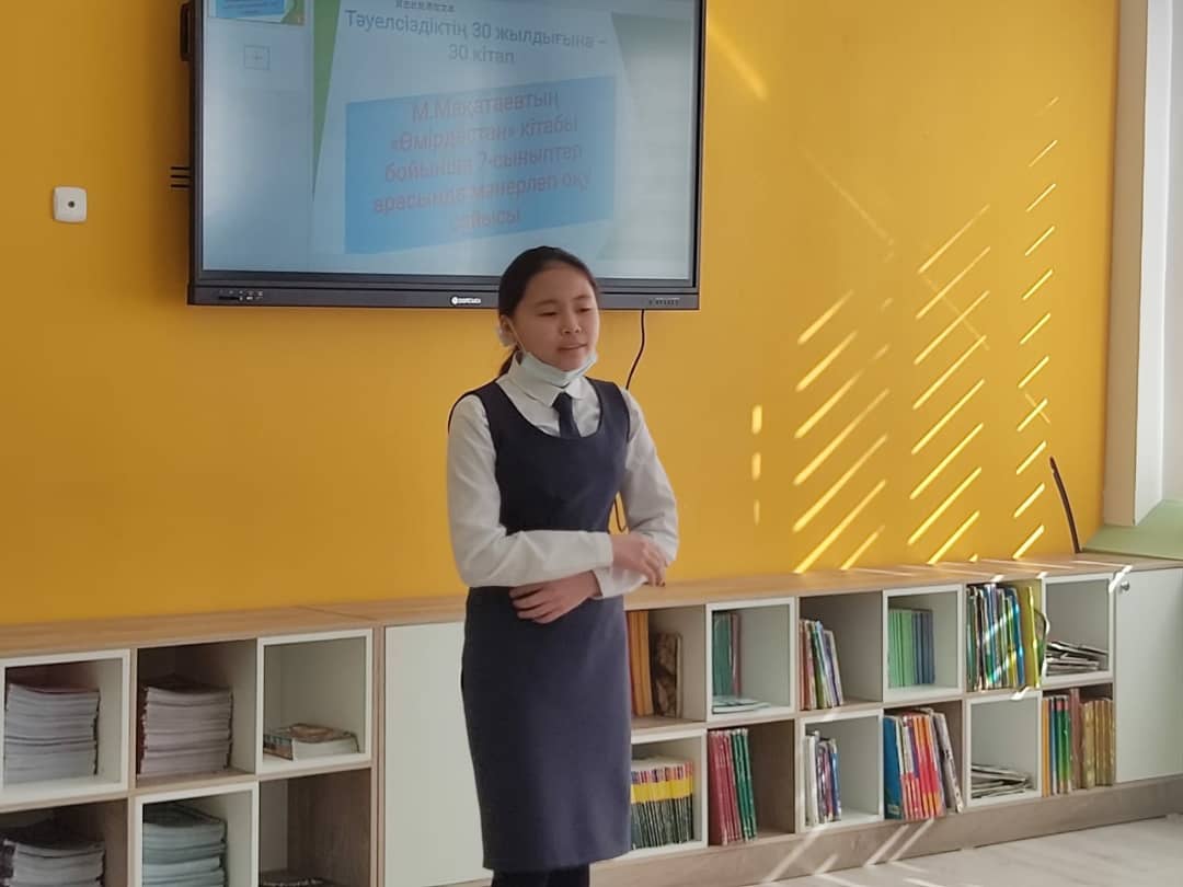 «Бір ел – бір кітап» акциясы аясында М.Мақатаевтың «Өмірдастан» кітабы бойынша 7-сыныптар арасында мәнерлеп оқу сайысы өткізілді.