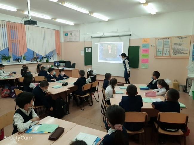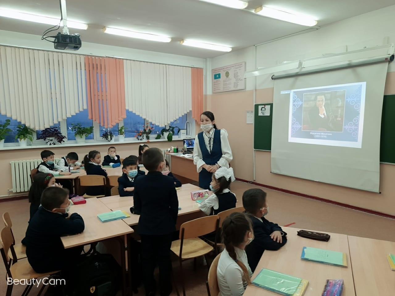 М.Мақатаевтың туған күніне орай "Жырлайды жүрек" тақырыбында 1 "Г" сынып жетекшісі Кадирова Ж.А сынып сағатынын өткізді. » 180 мектеп