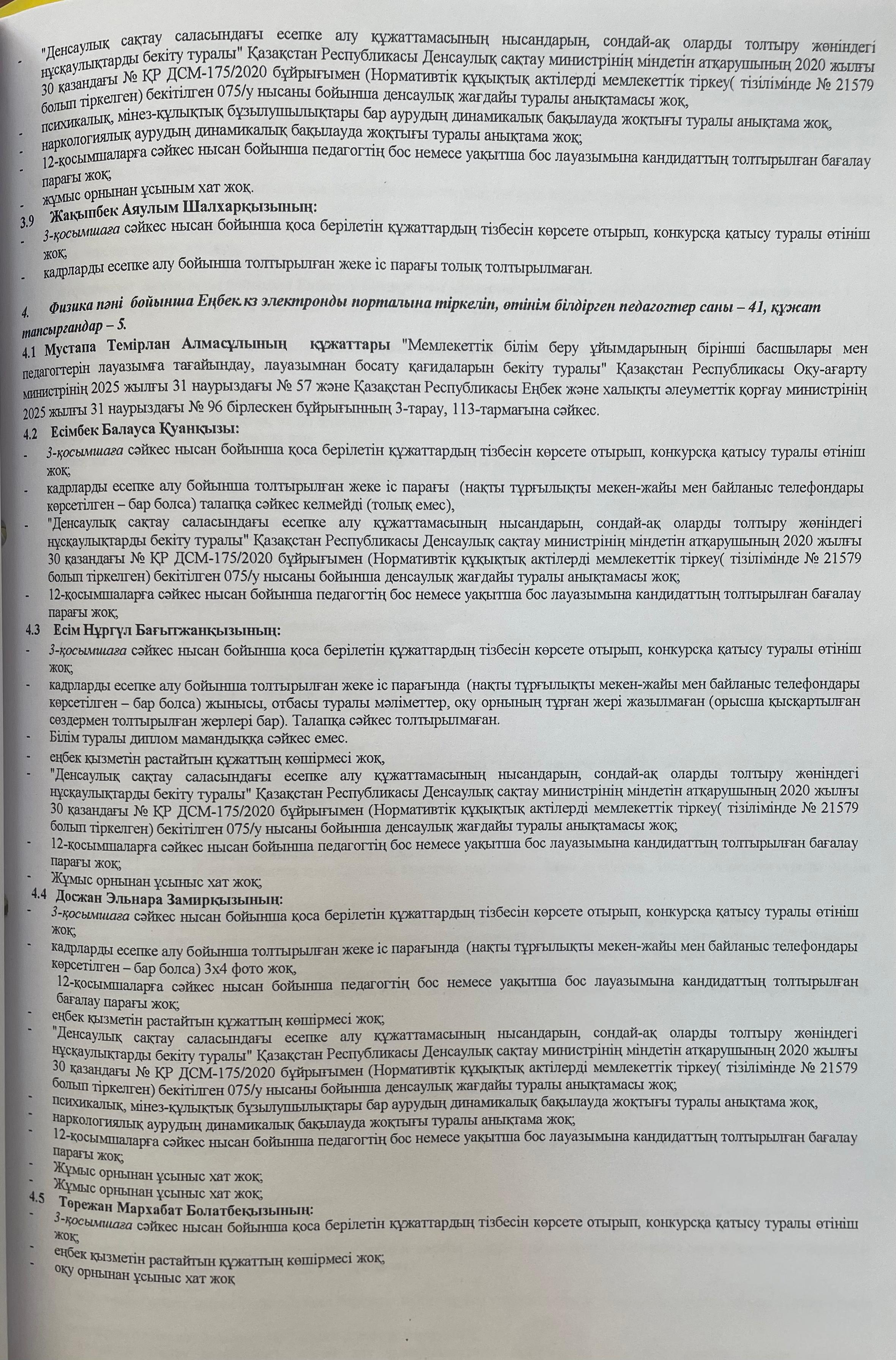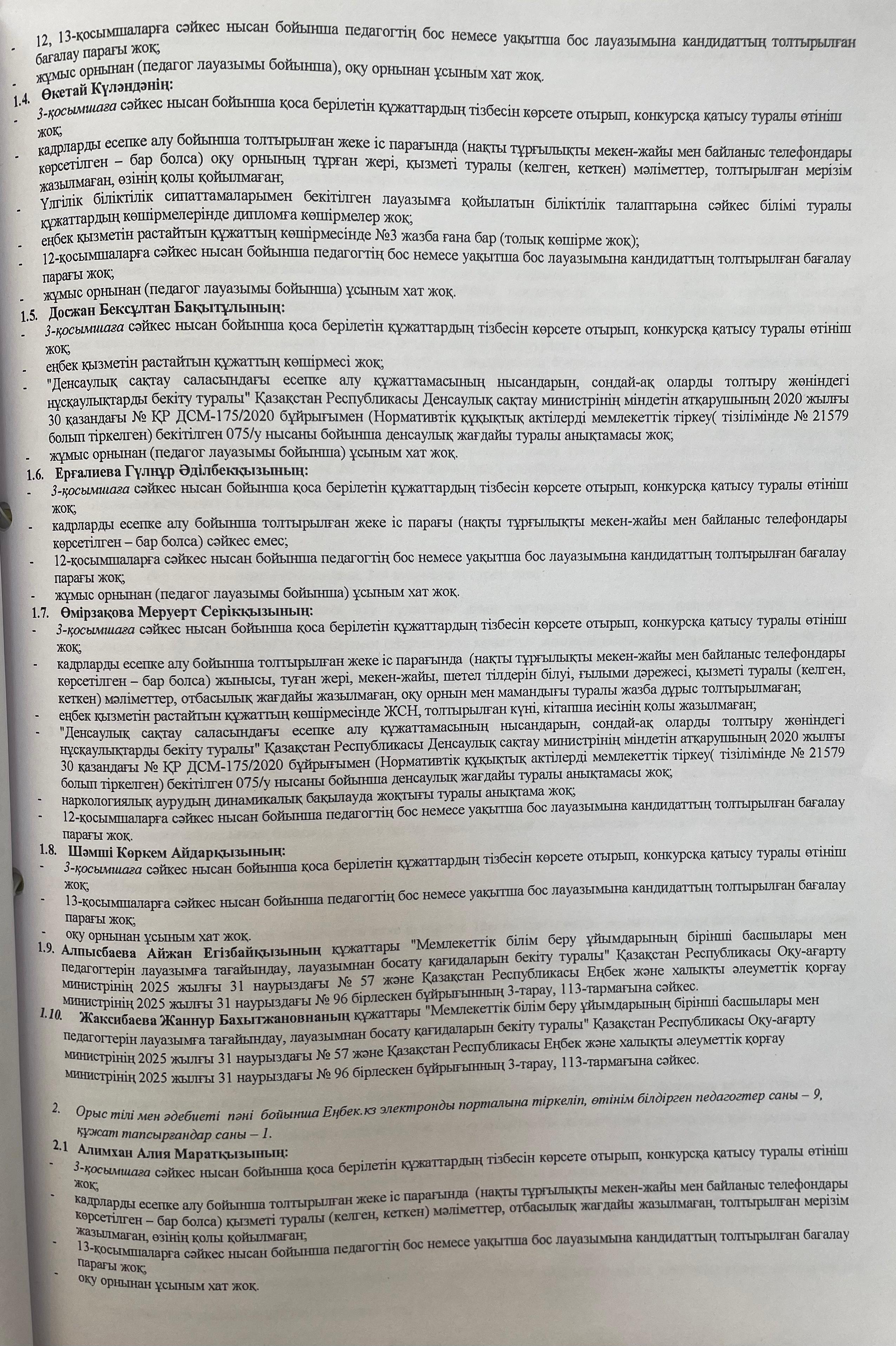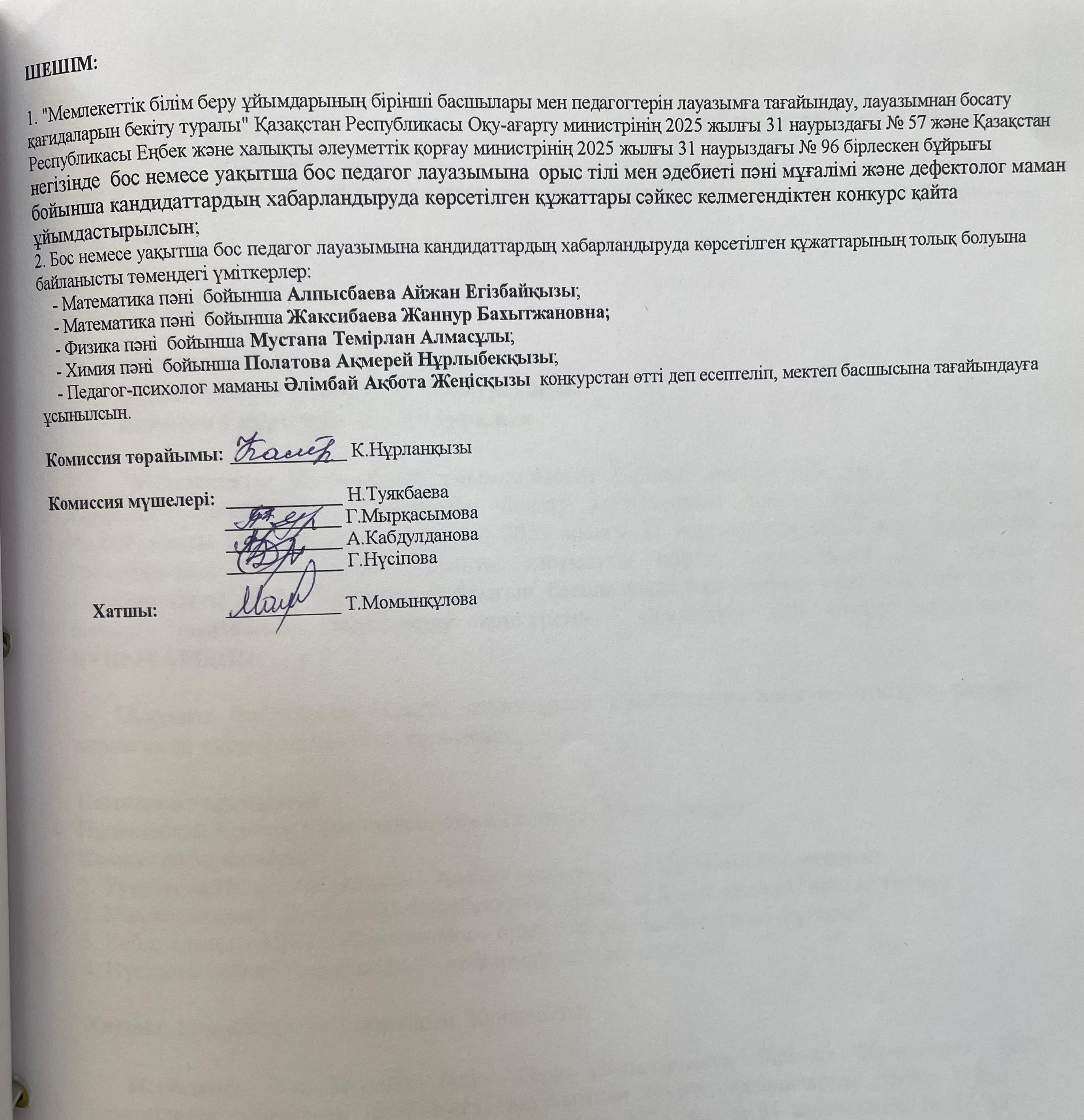 Бос және уақытша бос лауазымға тағайындауға байланысты өткізілген конкурстық комиссия отырысының хаттамасы
