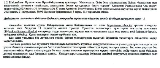 Бос және уақытша бос лауазымға тағайындауға байланысты өткізілген конкурстық комиссия отырысының хаттамасы