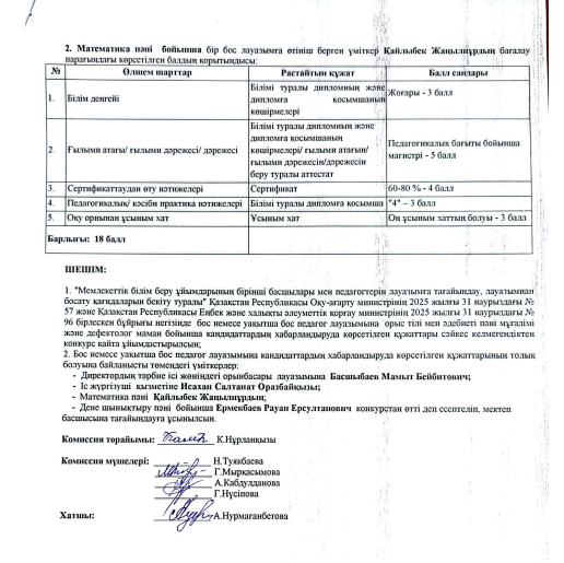 180 мектеп » Біз туралы » Бос орын » Бос және уақытша бос лауазымға тағайындауға байланысты өткізілген конкурстық комиссия отырысының хаттамасы №3