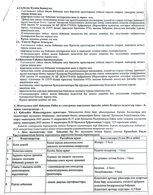 Бос және уақытша бос лауазымға тағайындауға байланысты өткізілген конкурстық комиссия отырысының хаттамасы №3 » 180 мектеп
