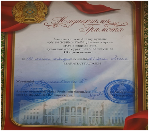 «Ерекше білімді қажет ететін оқушылар» арасында «Күз айлары» тақырыбында «Жас суретшілер» байқауына қатысты.