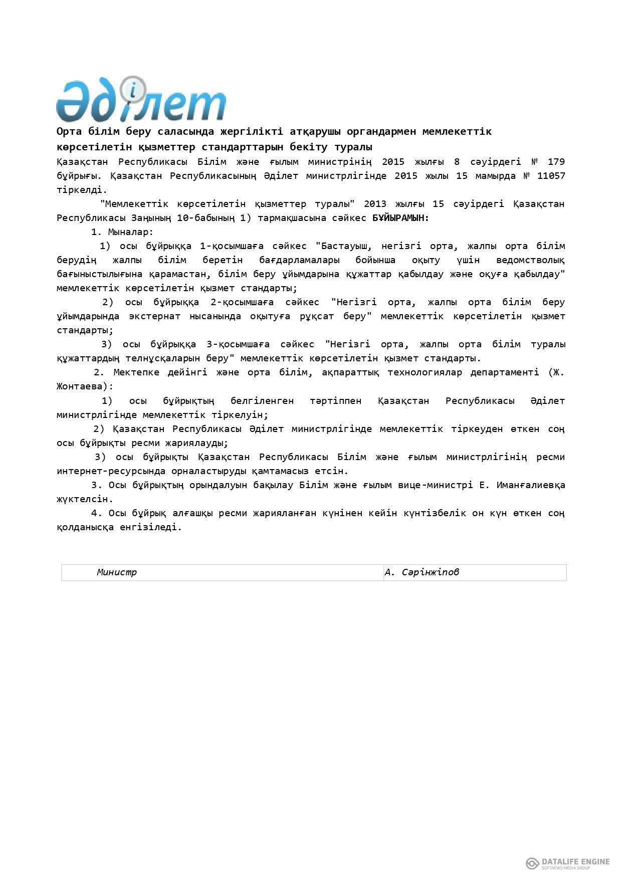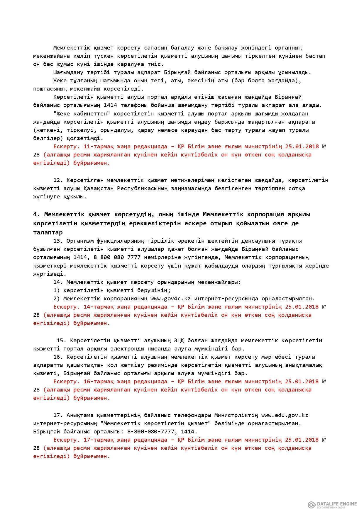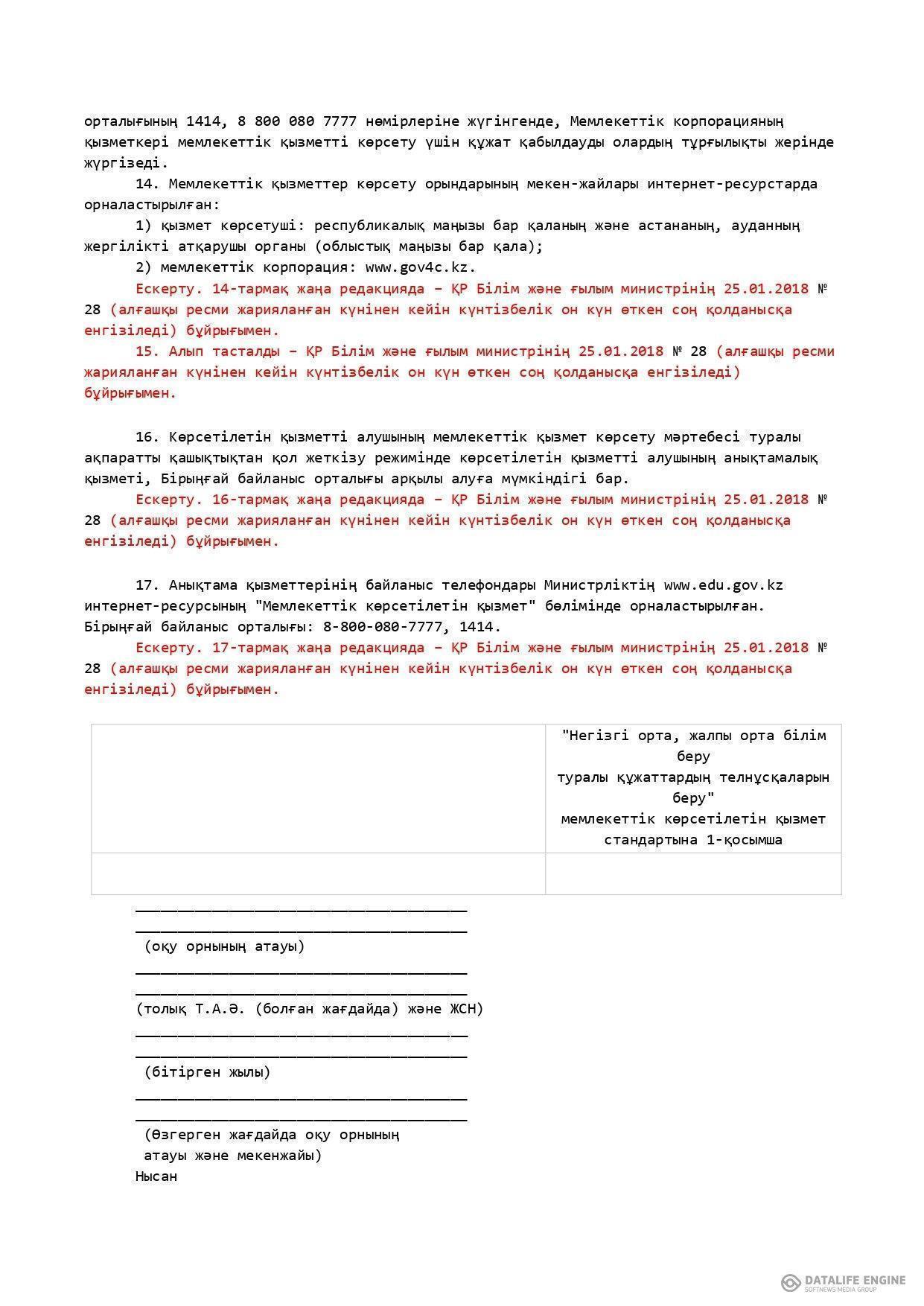 » » » №180 ЖББ мектеп бойынша Орта білім беру саласында мемлекеттік көрсетілетін қызметтер стандарттары