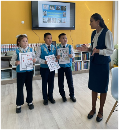Іс-шара барысында оқушылар әр түрлі пазлдардан тұратын мамандық түрлерін құрастыра отырып, өздерінің болашақ мамандықтары туралы баяндады.