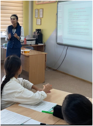 Кәсіптік бағдар беруші Мұса Аяулым және сынып жетекшісі Шураева Назира Уразалиевнаның ұйымдастыруымен 8 “А” сыныбымен «Мың мамандық бар, таңдап, талғап бірін ал!» тақырыбында сынып сағаты өткізілді.