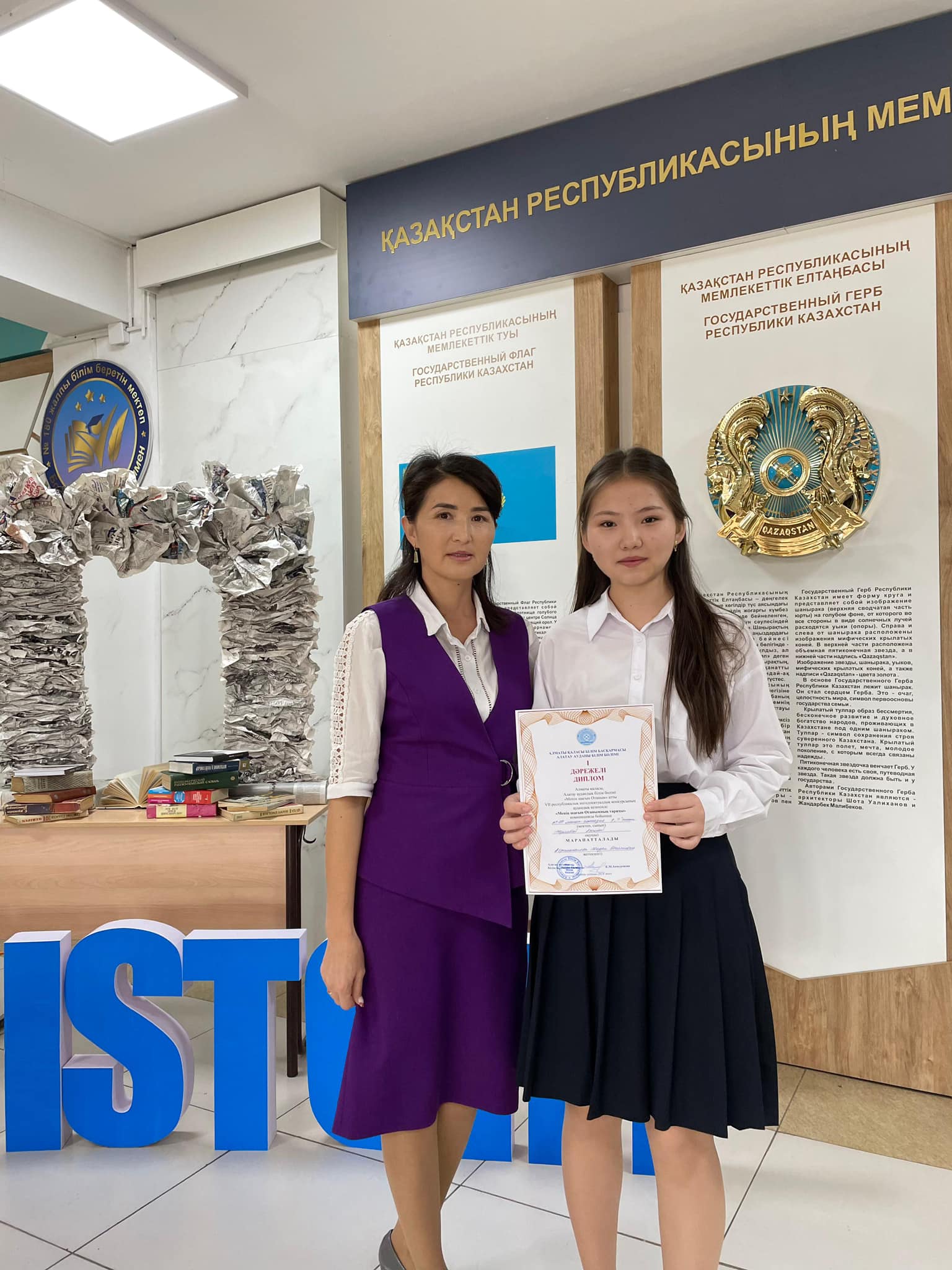Менің шағын Отанымның тарихы” номинациясы бойынша 9 Г сынып оқушысы Жұмабай Асемай 1 дәрежелі дипломмен марапатталды