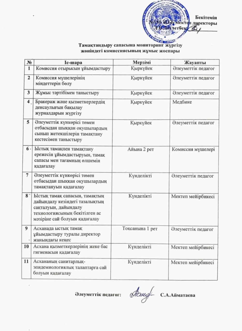 01 қыркүйек 2022 0 1 2 3 4 5 Тамақтандыру сапасына мониторинг жүргізу жөніндегі комиссияның жұмыс жоспары Осы беттің QR-коды:QR-код этой страницы: