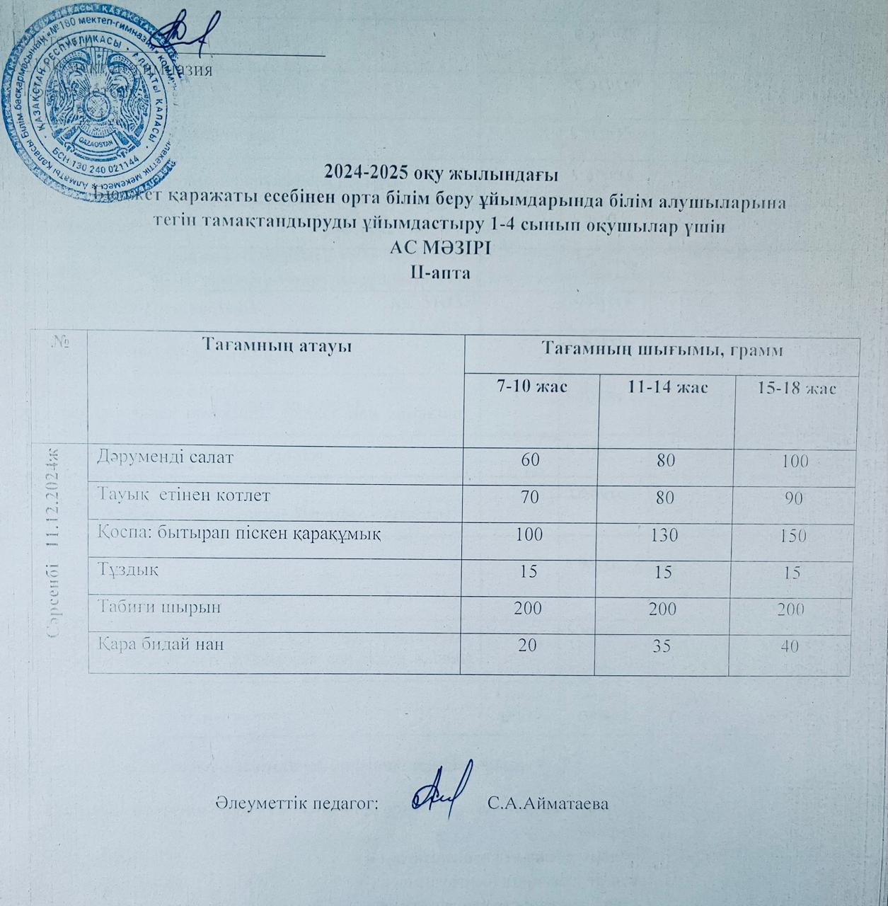11 желтоқсан 2024 0 1 2 3 4 5 Ас мәзірі ІІ апта 3 күн - 11.12.2024ж Осы беттің QR-коды:QR-код этой страницы:
