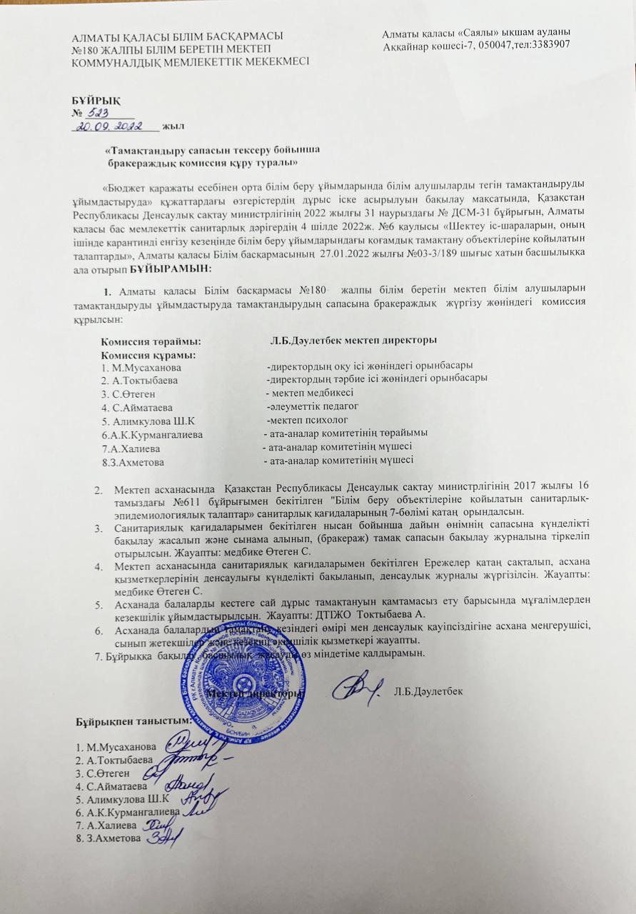 20 қыркүйек 2022 0 1 2 3 4 5 Тамақтандыру сапасын тексеру бойынша бракераждық комиссия құру туралы Осы беттің QR-коды:QR-код этой страницы: